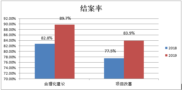 從鼓勵提倡推行提案改善以來,公司不管是從內部成本節約、設備改進、技術改善、團隊建設、生產效率、交付周期等方面都有了明顯的提升,且個別改善項目成效顯著,與往年相比,投訴率在不斷的下降,項目改善、合理化建議數量都在明顯的提升,而且結案率及成效也在不斷的上升。