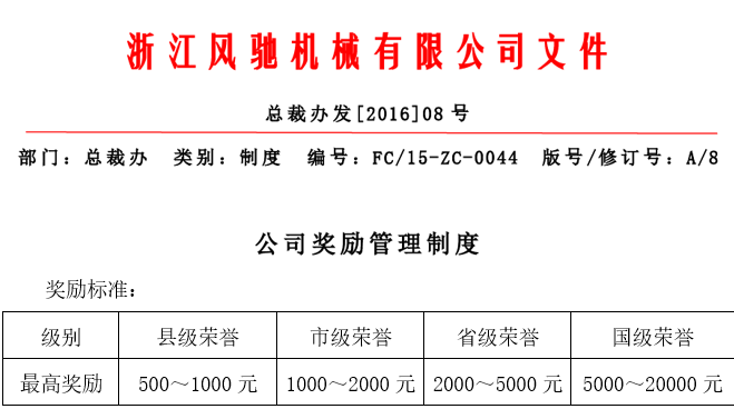 我司為了相應政府號召,鼓勵符合要求的員工代表企業(yè)參加各項比賽和評選活動,特完善了獎勵政策,對于員工代表企業(yè)在各類比賽或評選中獲得名次及成功入選,為公司贏得榮譽,一經核實公司將給予特別榮譽獎,并額外給予積分獎勵。